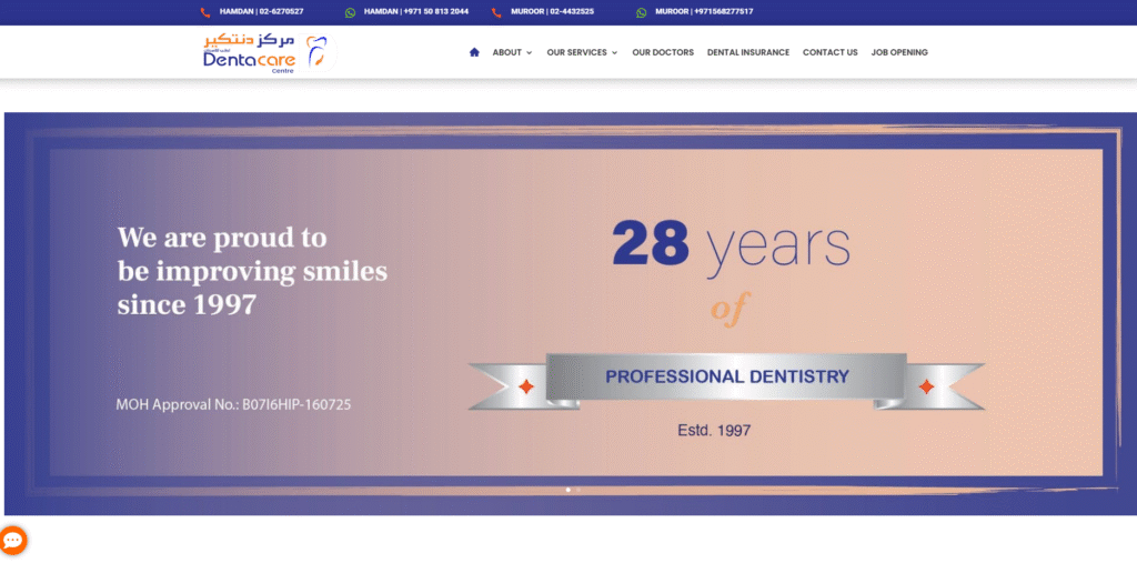 Dentacare Centre (Dental & Orthodontics) Hamdan has been providing trusted dental care in Abu Dhabi for over 25 years. Conveniently located on Hamdan Street and Muroor, the clinic offers high-quality treatments at affordable prices. With decades of expertise and a patient-first approach, Dentacare Centre ensures healthy, confident smiles for the whole family.