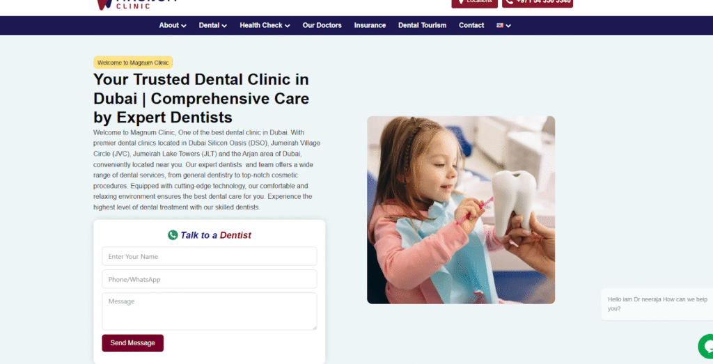 Magnum Dental Clinic in Dubai Silicon Oasis provides complete dental care for the whole family, from routine checkups and pediatric treatments to cosmetic procedures, implants, orthodontics, and root canals. Conveniently located near Meydan Racecourse and Dubai Safari Park, the clinic is known for combining advanced technology with gentle, patient-focused care. Whether you need an emergency visit, a smile makeover, or kid-friendly dental care, the experienced team ensures precise and comfortable treatments with transparent pricing. For DSO residents searching for trusted “dental clinics near me,” Magnum Dental Clinic is your go-to destination.